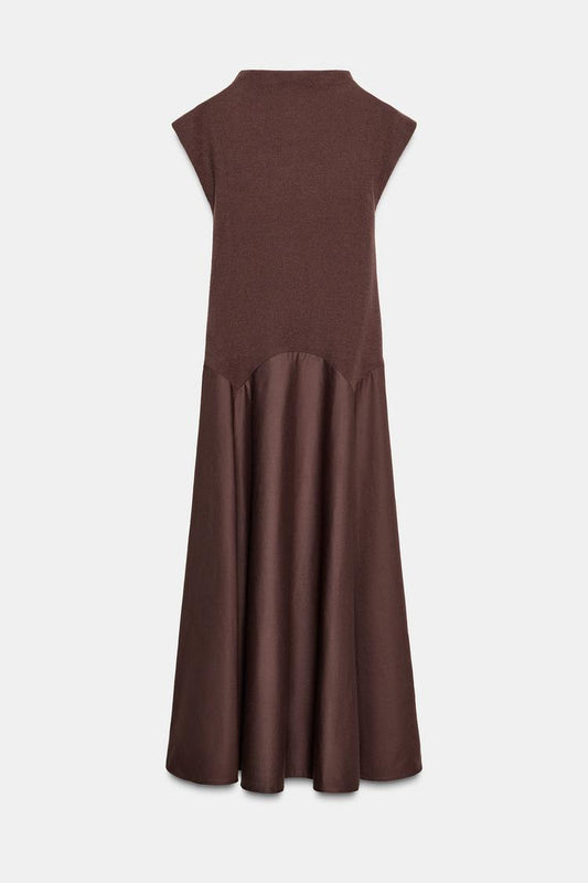 MIDI SOFT TWO-TONE DRESS WITH HIGH NECK