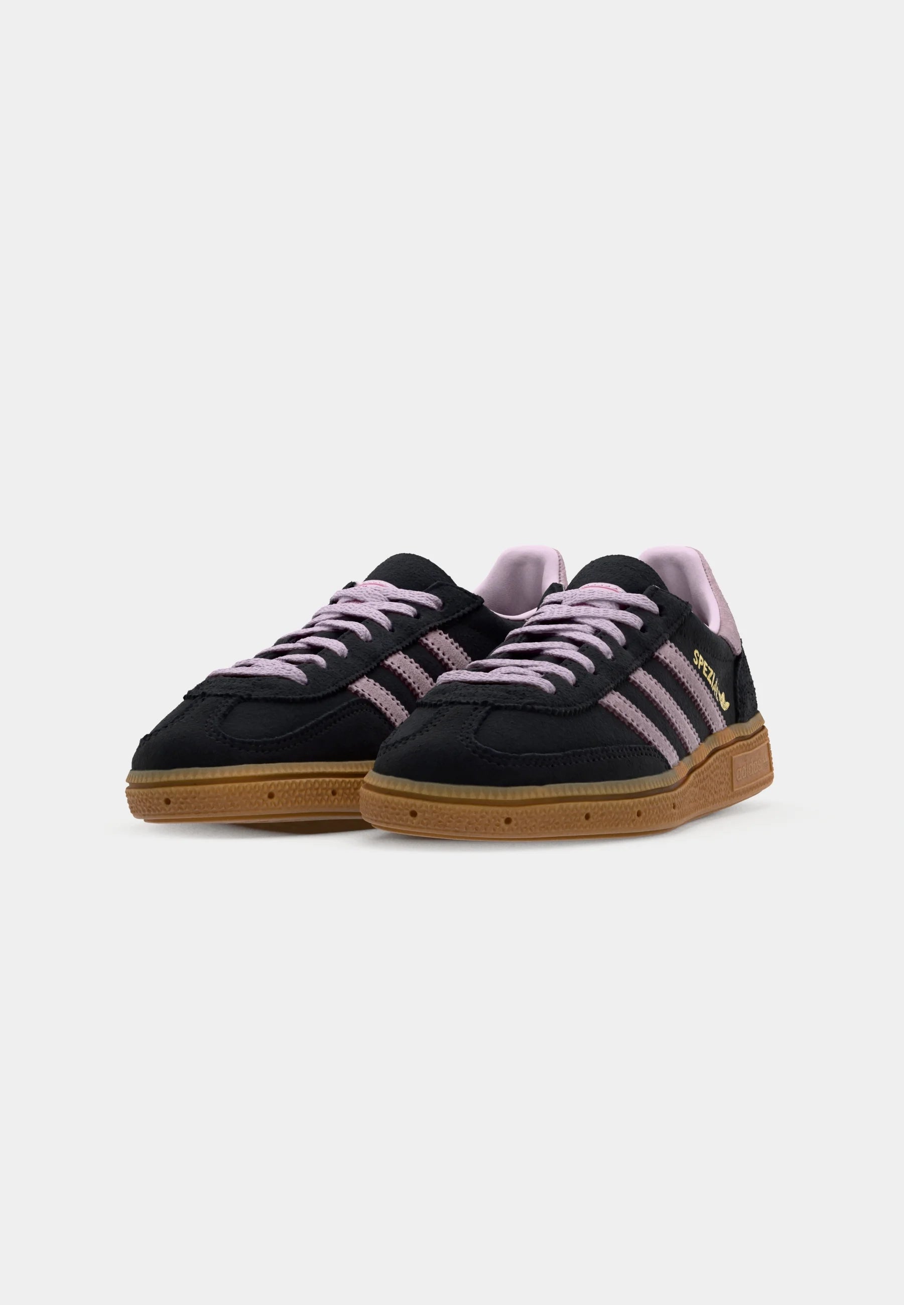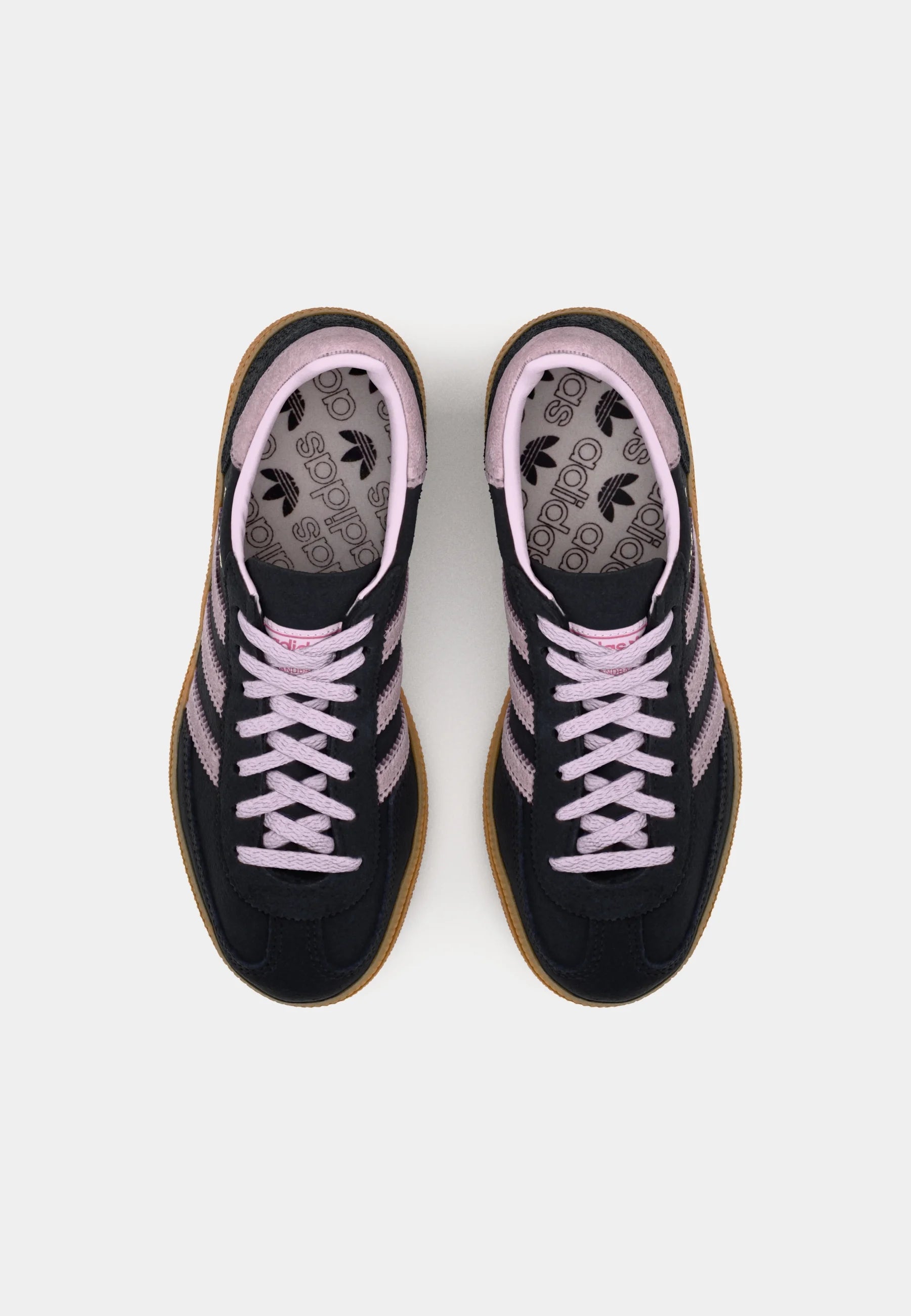 - Premium suede upper with contrasting light-pink panels and iconic retro-inspired 3 stripes